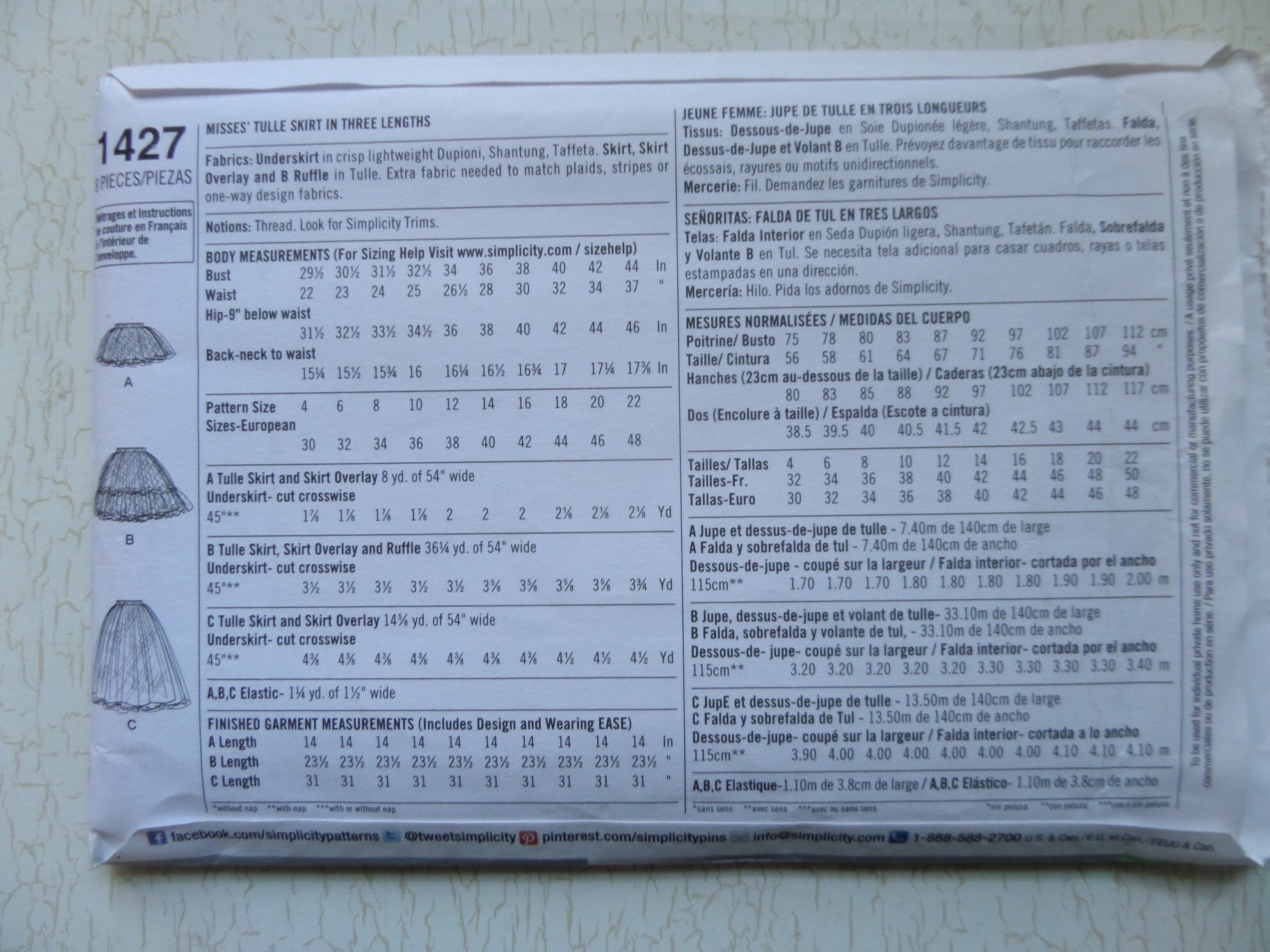 Simplicity Misses Tulle Skirt In Three Lengths 1427 Pattern Review By Ekraterf